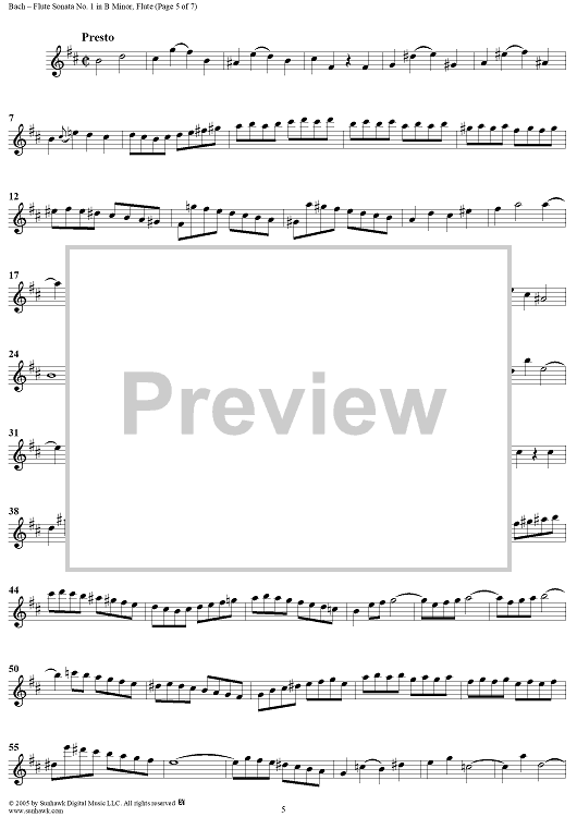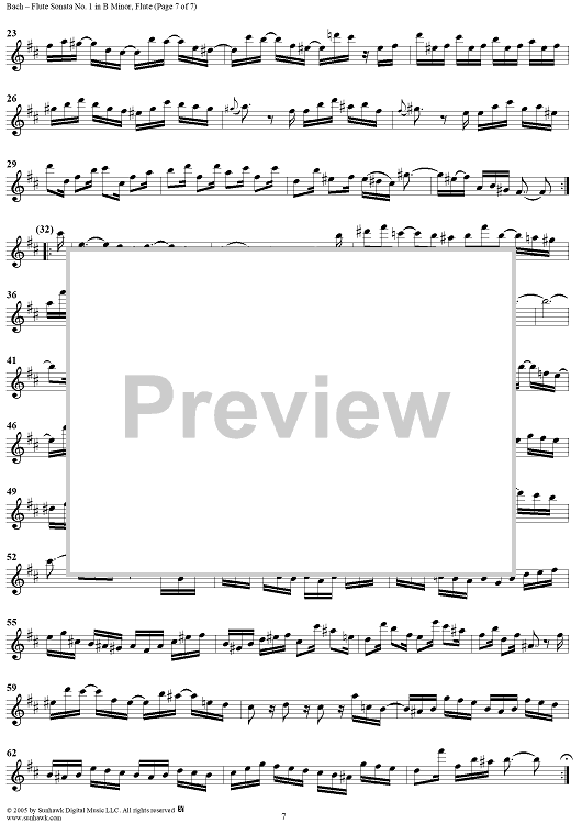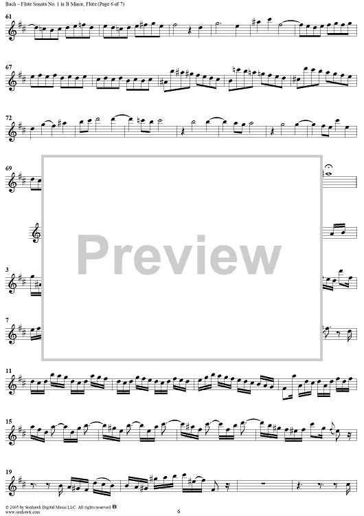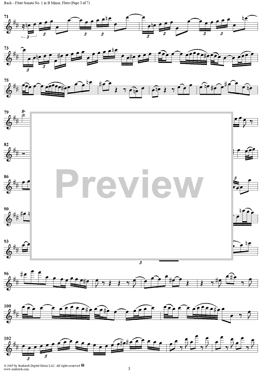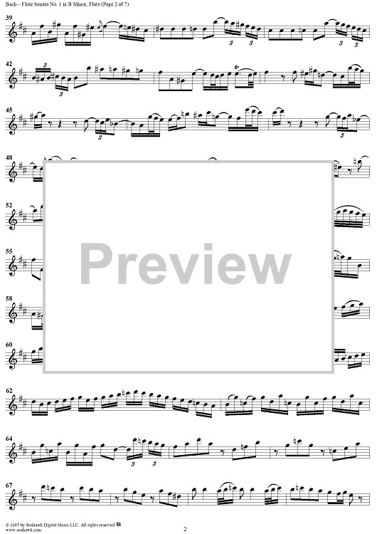 Digital Sheet Music for Flute Sonata No. 1 in B Minor, BWV1030 - Flute by Johann Sebastian Bach scored for Flute/Piano; id:309348