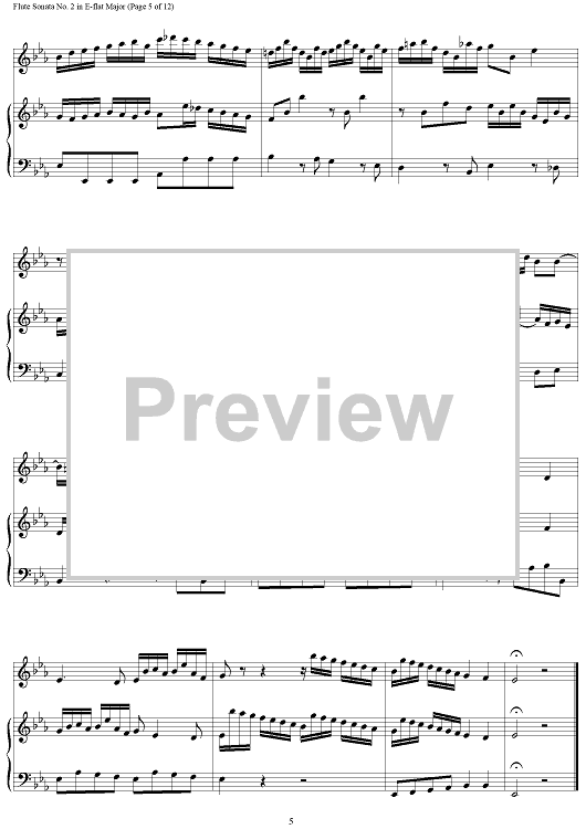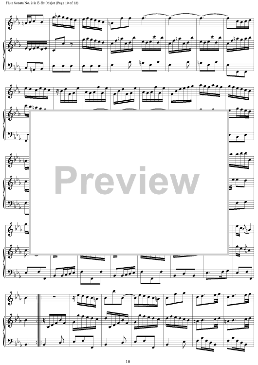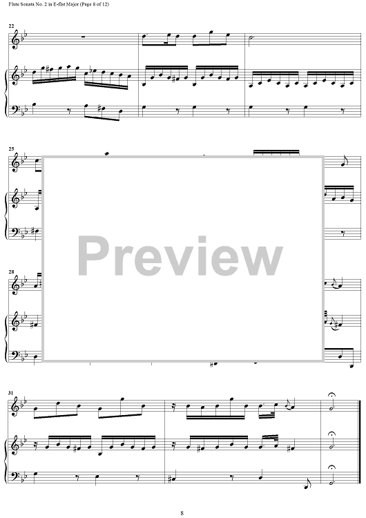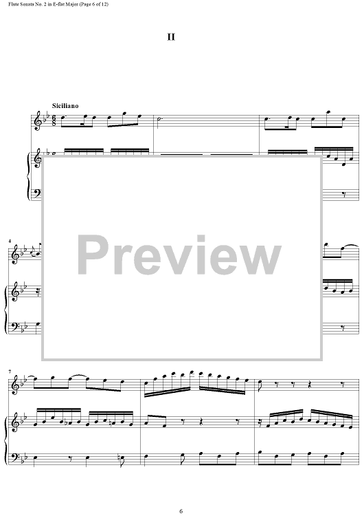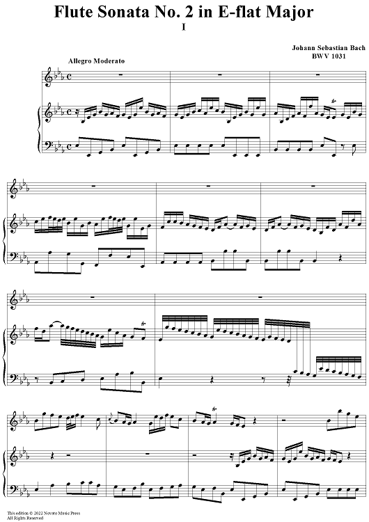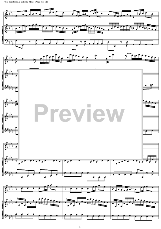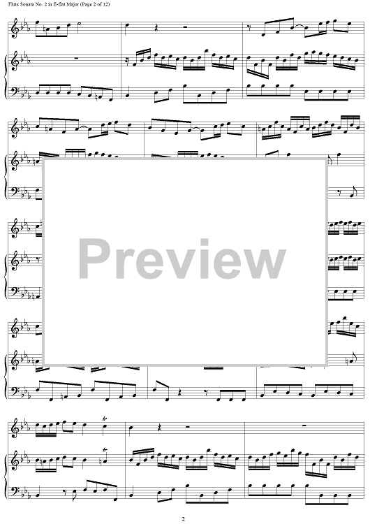 Digital Sheet Music for Flute Sonata No. 2 in E-flat Major, BWV1031 - Piano Score by Johann Sebastian Bach scored for Flute/Piano; id:309349