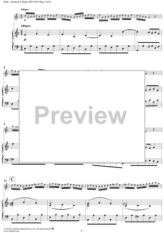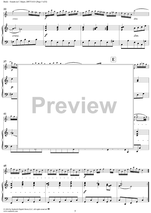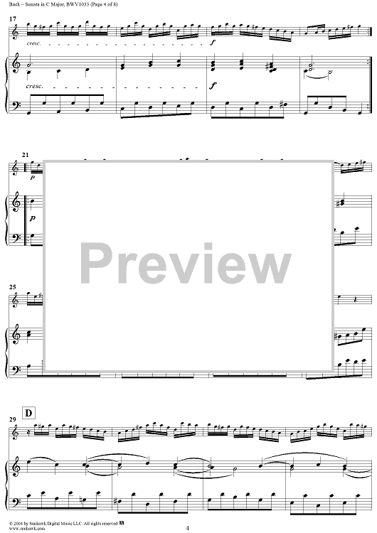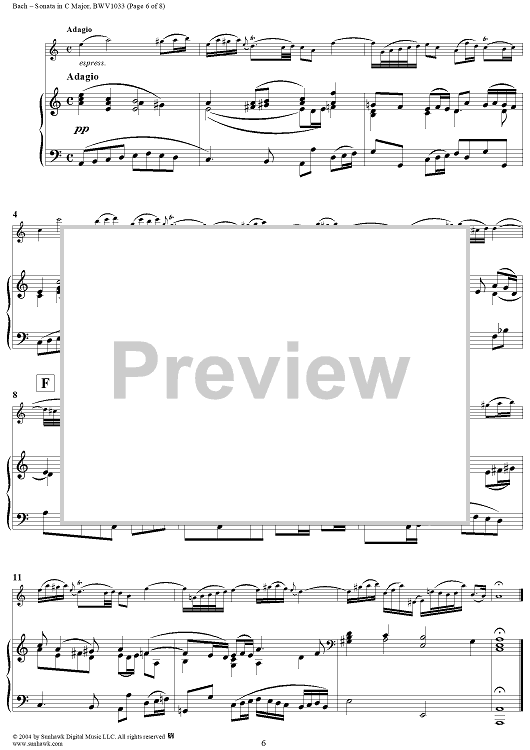 Digital Sheet Music for Flute Sonata No. 4 - Piano Score by Johann Sebastian Bach scored for Flute/Piano; id:303645