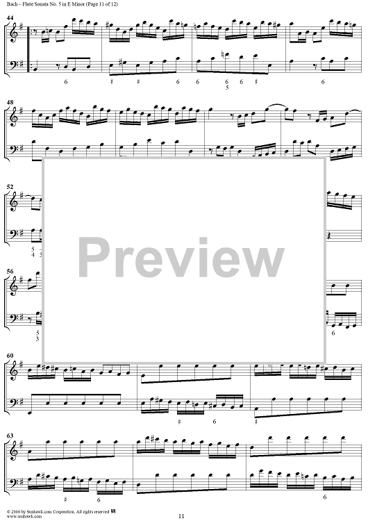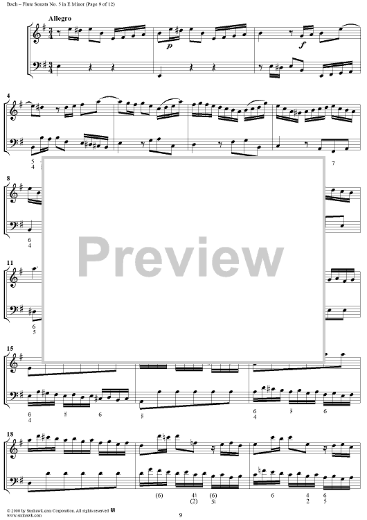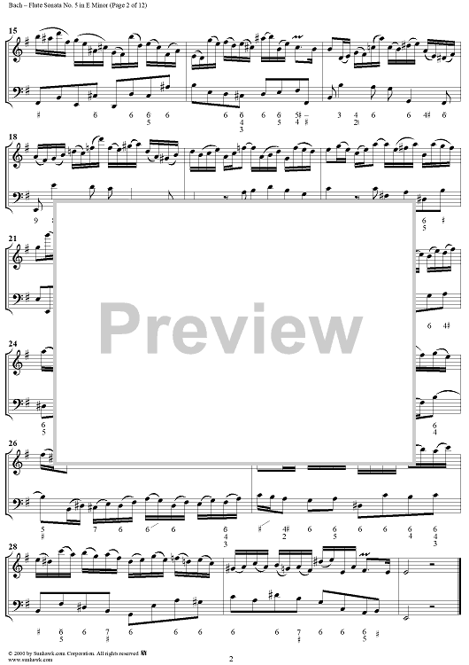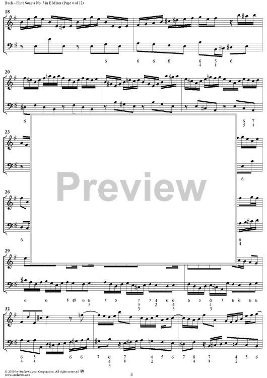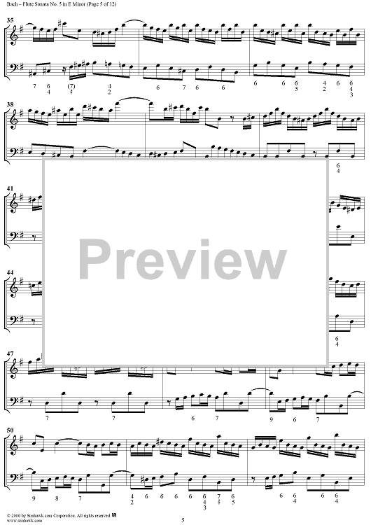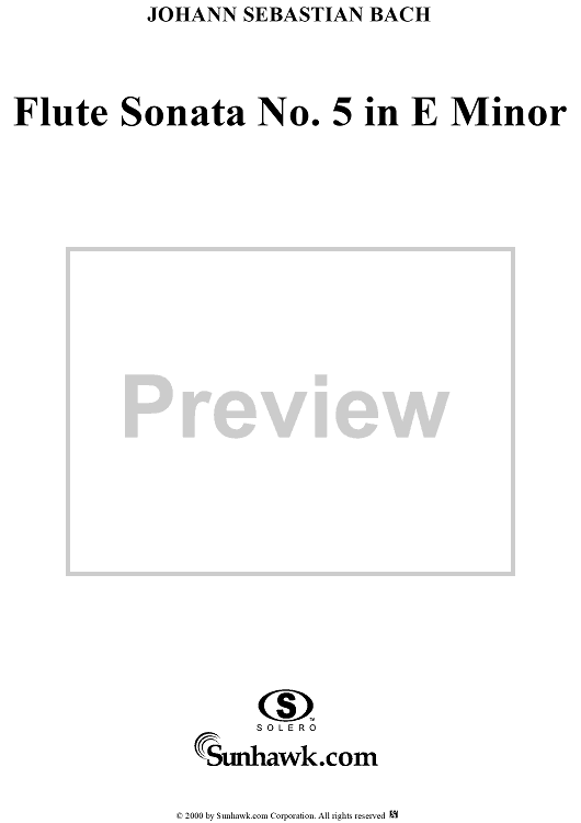 Digital Sheet Music for Flute Sonata no. 5 in E Minor (BWV1034) by Johann Sebastian Bach scored for Flute/Continuo; id:235410