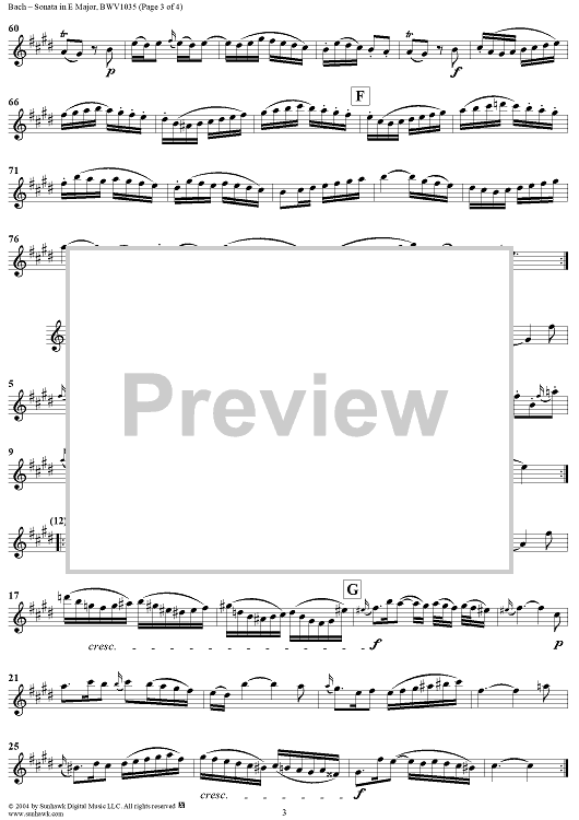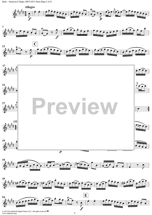 Digital Sheet Music for Flute Sonata No. 6 - Flute by Johann Sebastian Bach scored for Flute/Piano; id:303650