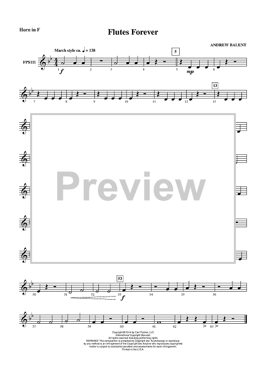 "Flutes Forever - Horn in F" Sheet Music by Andrew Balent