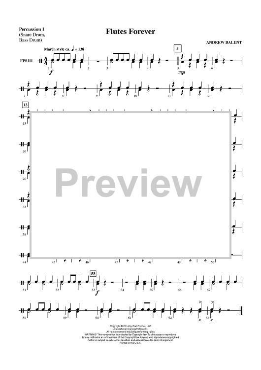 "Flutes Forever - Percussion 1" Sheet Music by Andrew Balent