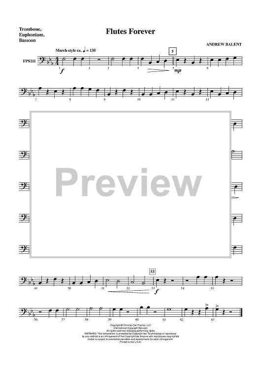 Digital Sheet Music for Flutes Forever - Trombone, Euphonium BC, Bassoon by Andrew Balent scored for Concert Band; id:451250