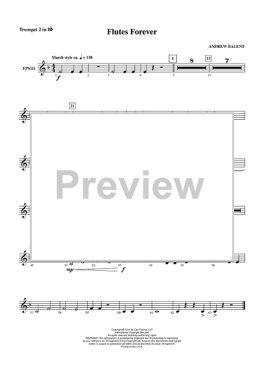 "Flutes Forever - Trumpet 2 in Bb" Sheet Music by Andrew Balent