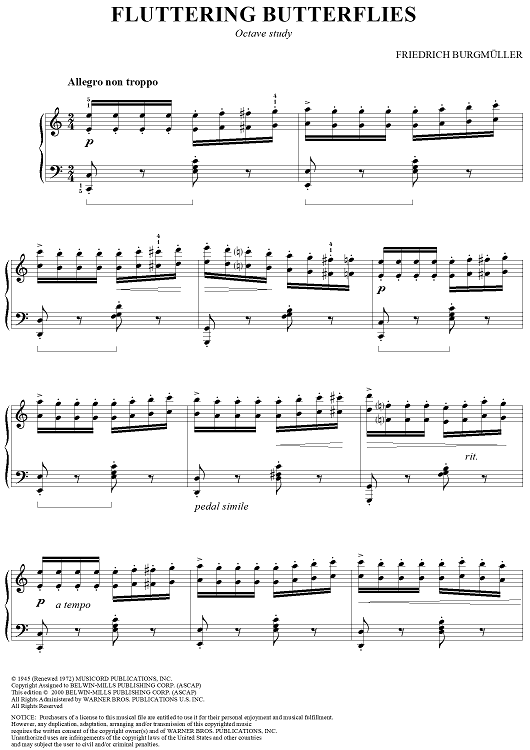 Digital Sheet Music for Fluttering Butterflies by Friedrich Burgmüller scored for Piano Solo; id:295886