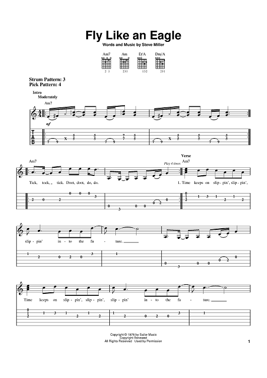 Digital Sheet Music for Fly Like An Eagle by Steve Miller, Seal, Steve Miller Band scored for Easy Guitar Tab; id:386216