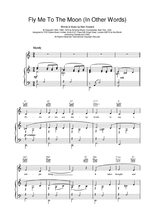 Digital Sheet Music for Fly Me To The Moon by Frank Sinatra, Bart Howard scored for Piano/Vocal/Chords; id:380239