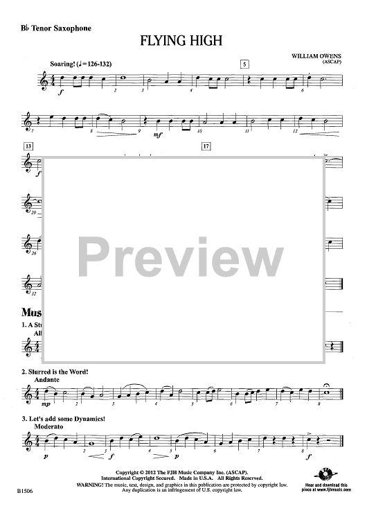 "Flying High - Bb Tenor Sax" Sheet Music by William Owens