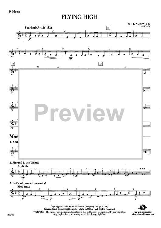 Digital Sheet Music for Flying High - F Horn by William Owens scored for Concert Band; id:438713