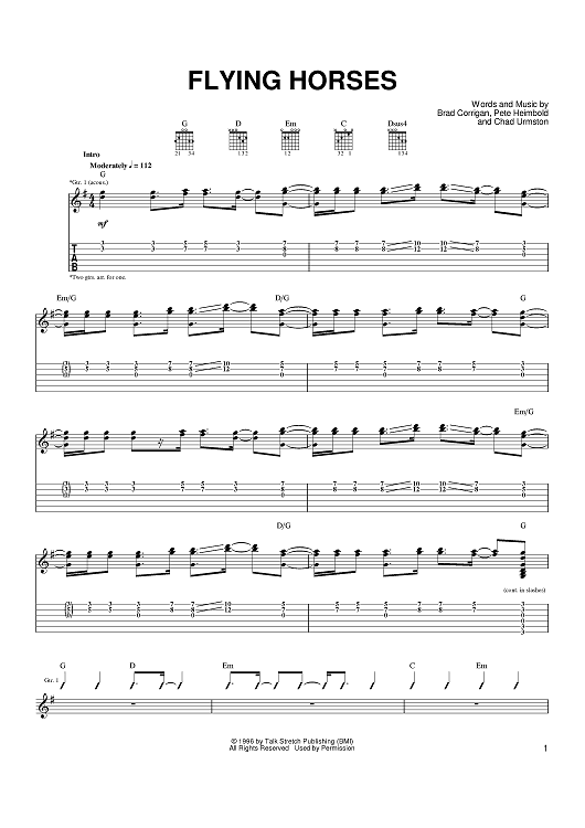 Digital Sheet Music for Flying Horses by Brad Corrigan, Dispatch, Pete Francis Heimbold, Chad Urmston scored for Guitar Tab; id:372985