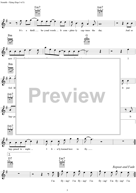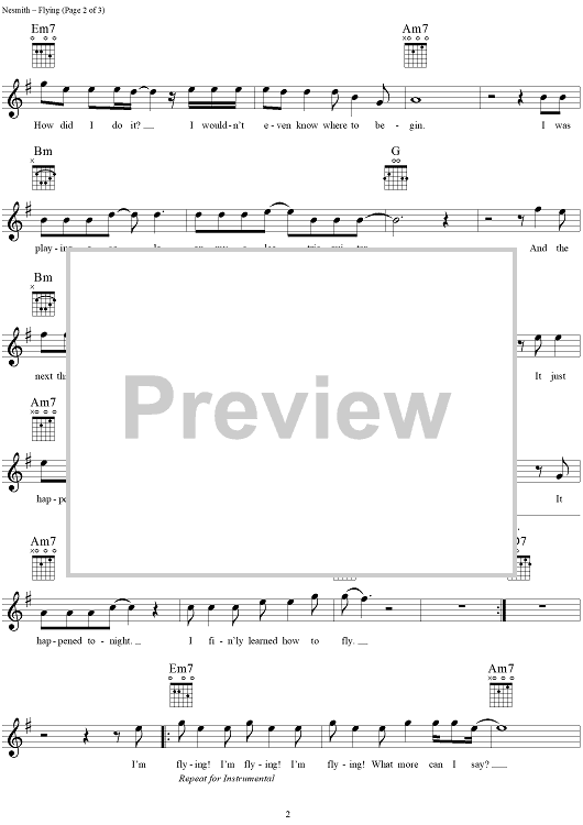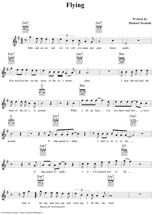 Digital Sheet Music for Flying by Michael Nesmith scored for Lead Sheet; id:307917
