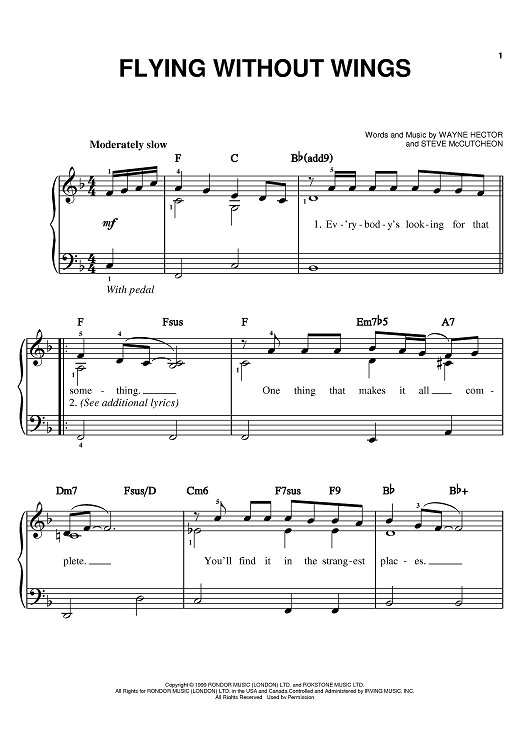 Digital Sheet Music for Flying Without Wings by Wayne Hector, Ruben Studdard, Steve McCutcheon scored for Easy Piano; id:372719