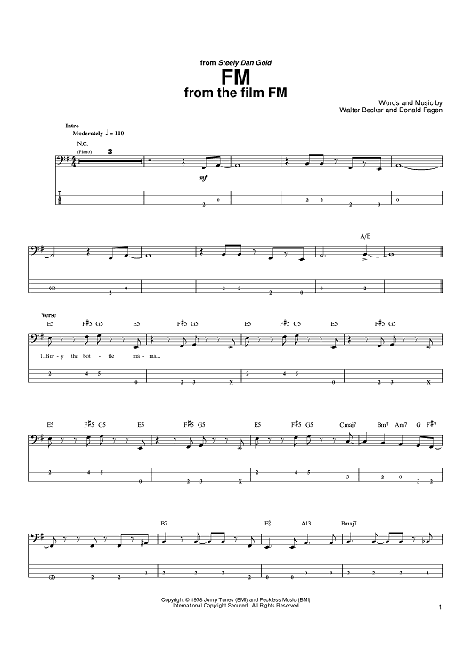 Digital Sheet Music for FM by Steely Dan, Donald Fagen, Walter Becker scored for Bass Tab; id:390685