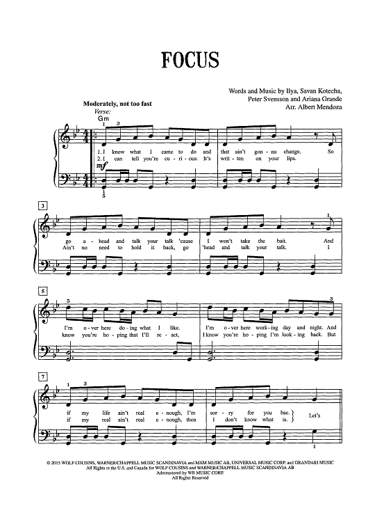 "Focus" Sheet Music by Ariana Grande
