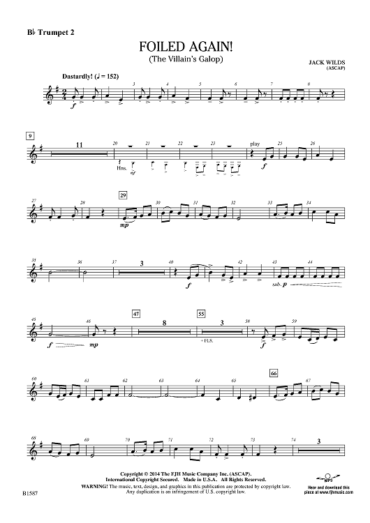 "Foiled Again! (The Villain's Galop) - Bb Trumpet 2" Sheet Music by Jack Wilds