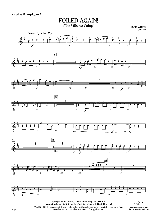 Digital Sheet Music for Foiled Again! (The Villain's Galop) - Eb Alto Sax 2 by Jack Wilds scored for Concert Band; id:445845