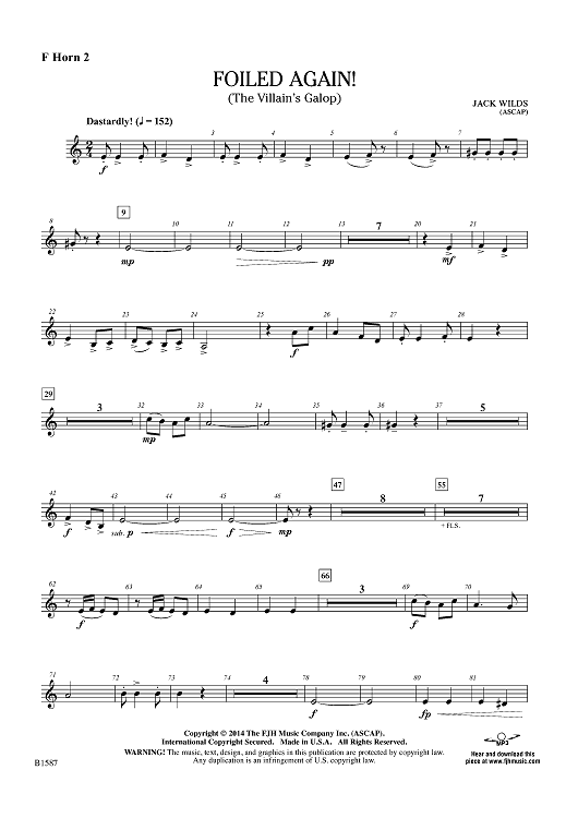 Digital Sheet Music for Foiled Again! (The Villain's Galop) - F Horn 2 by Jack Wilds scored for Concert Band; id:445852