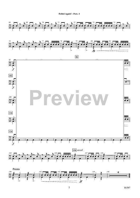 Digital Sheet Music for Foiled Again! (The Villain's Galop) - Percussion 1 by Jack Wilds scored for Concert Band; id:445862
