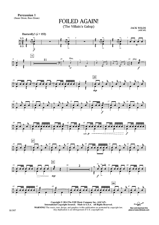"Foiled Again! (The Villain's Galop) - Percussion 1" Sheet Music by Jack Wilds