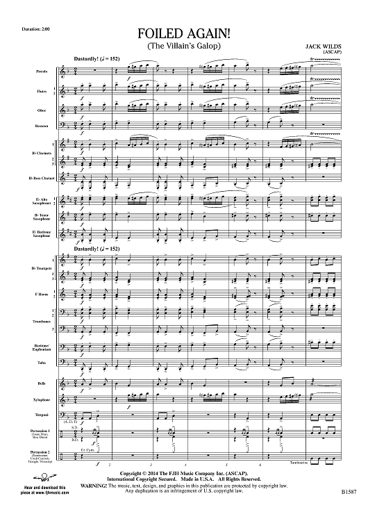 Digital Sheet Music for Foiled Again! (The Villain's Galop) - Score by Jack Wilds scored for Concert Band; id:445833