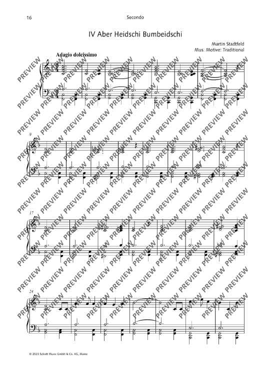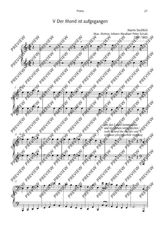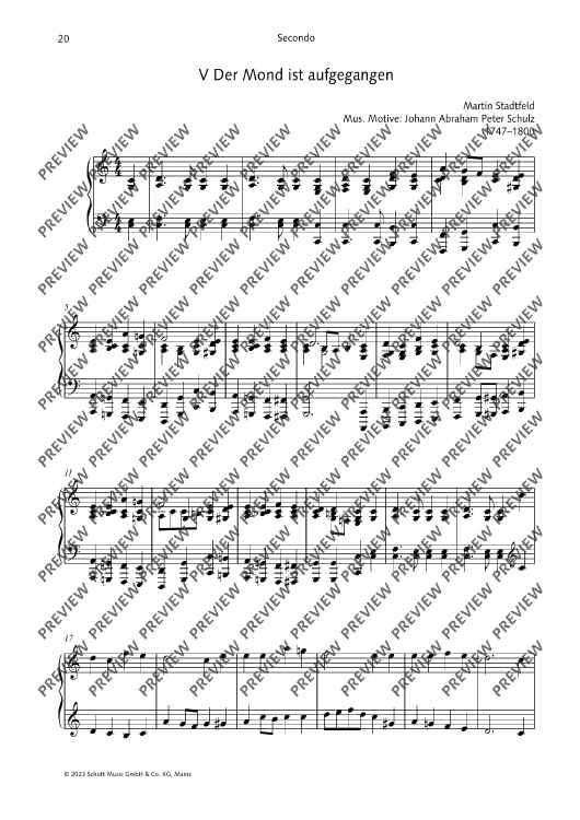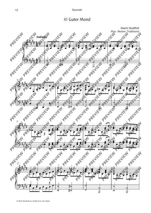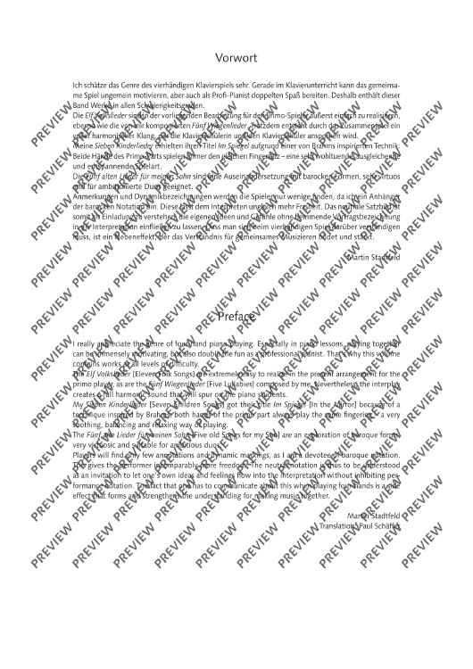 These arrangements and new compositions for piano four hands by Martin Stadtfeld are suitable for use in the classroom, in private practice, for auditions and for competitions. The different levels of difficulty allow not only beginner, but also advanced players, to get to know and appreciate the wonderful possibilities of four-hand piano playing.