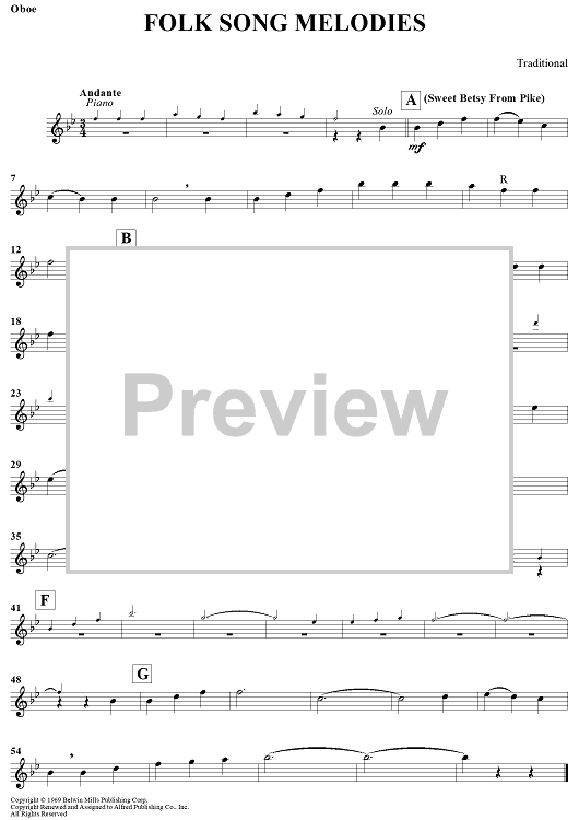 Digital Sheet Music for Folk Song Melodies by Traditional scored for Oboe/Piano; id:438121