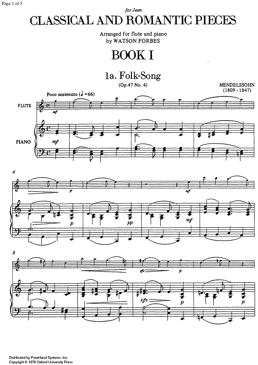 Digital Sheet Music for Folk Song (Op.47 No. 4) and Theme (Op.82) - Score by , Felix Mendelssohn, Watson Forbes, Alan Frank scored for Flute/Piano; id:349179