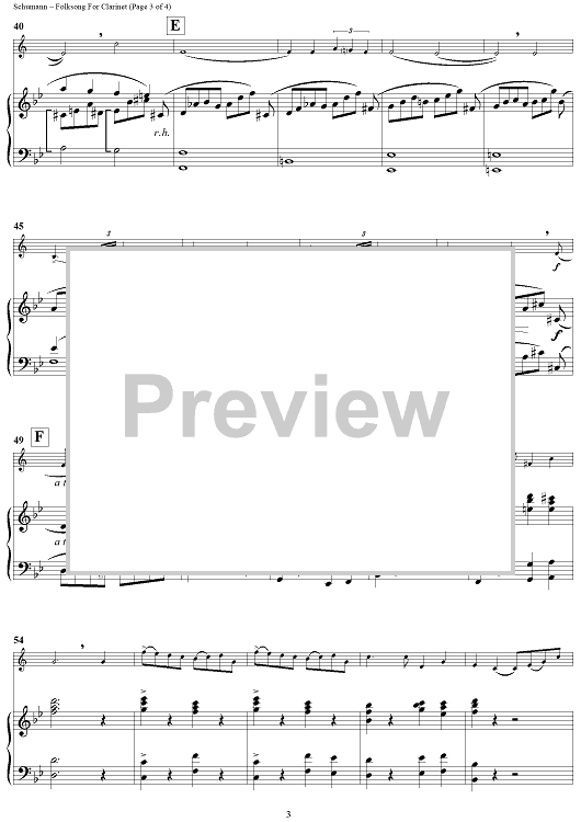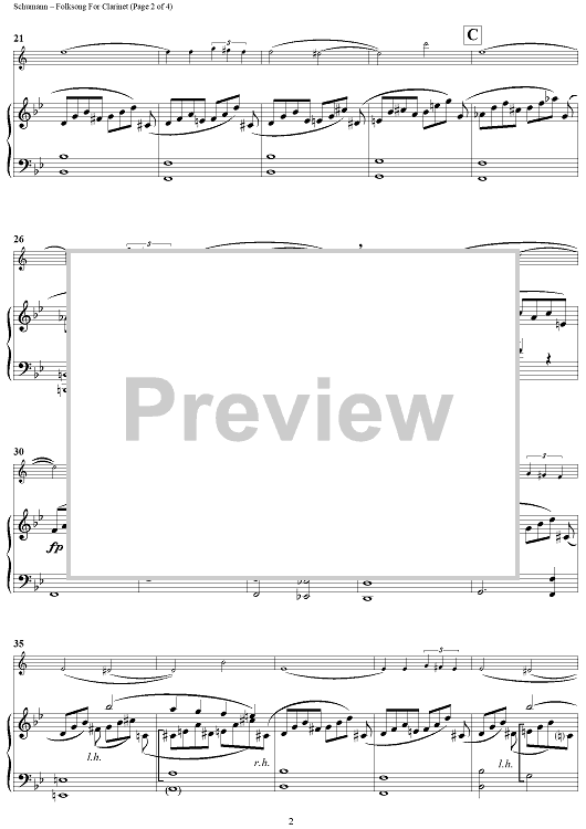 "Folksong For Clarinet" Sheet Music by Robert Schumann