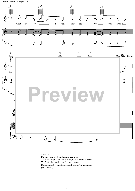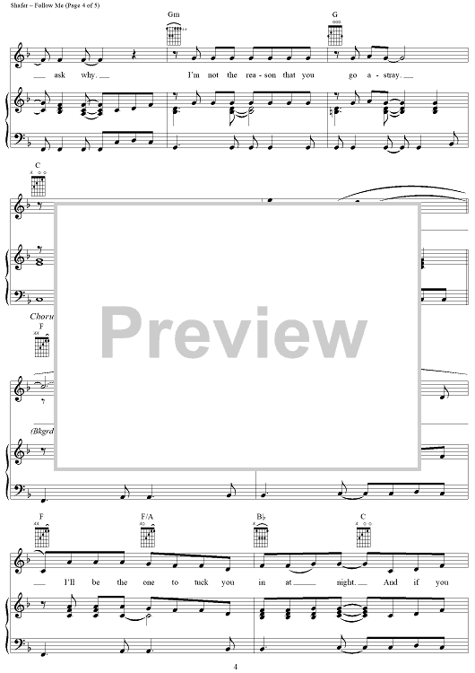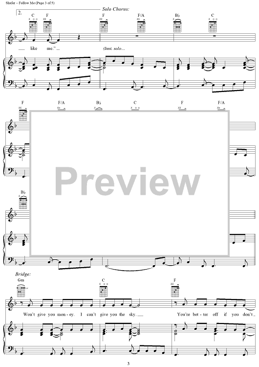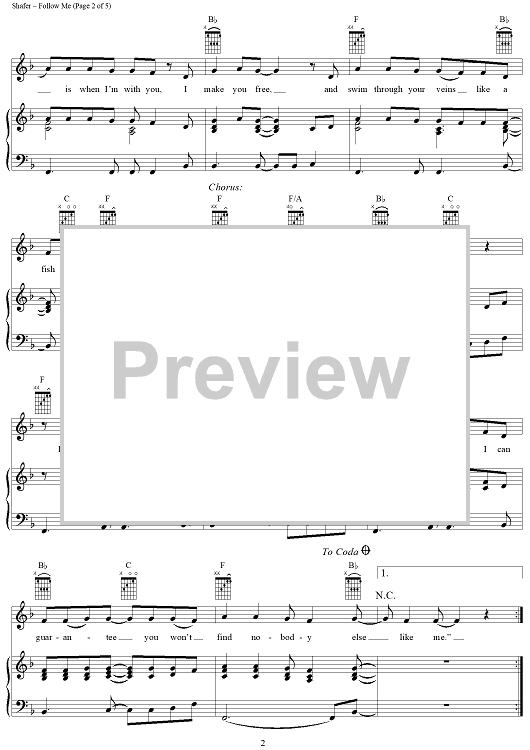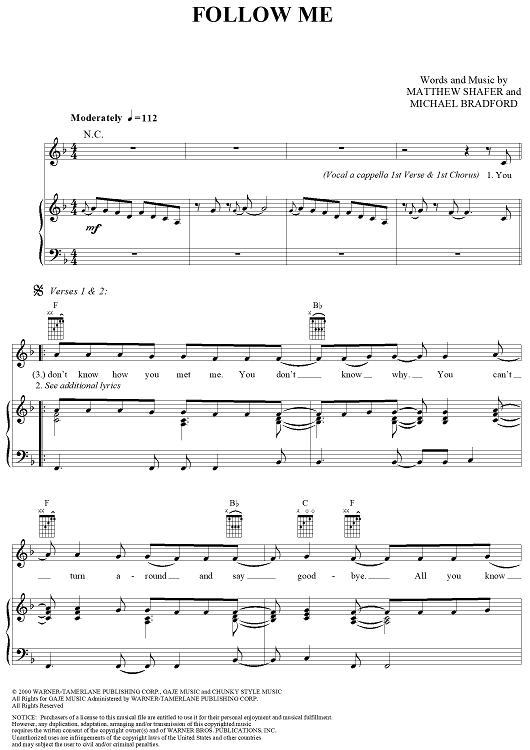Digital Sheet Music for Follow Me by Matthew Shafer, Uncle Kracker, Michael Bradford scored for Piano/Vocal/Chords; id:285661