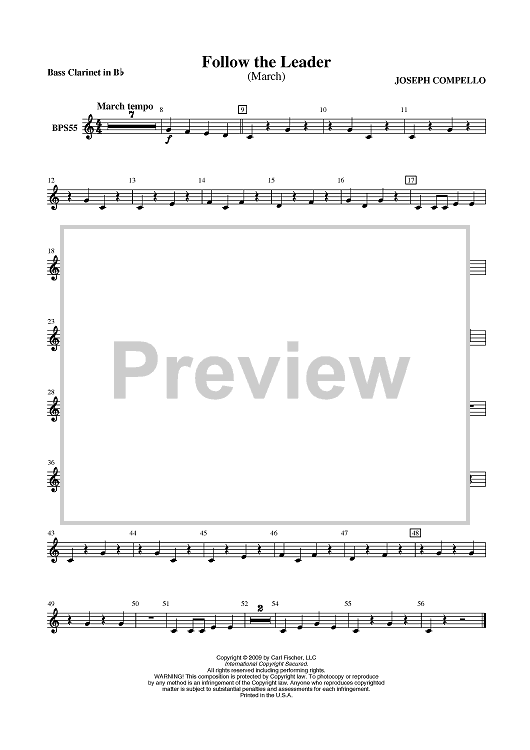 "Follow The Leader (March) - Bass Clarinet" Sheet Music by Joseph Compello