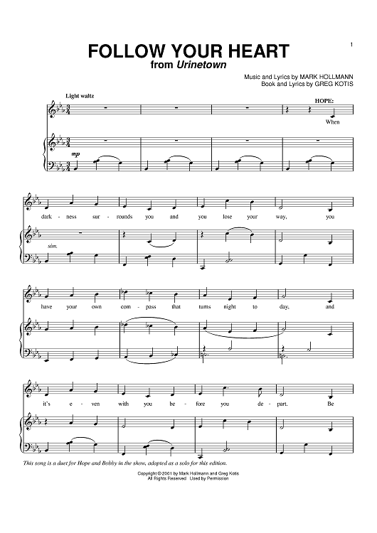 Digital Sheet Music for Follow Your Heart by Mark Hollmann, Greg Kotis scored for Piano/Vocal/Chords; id:387602
