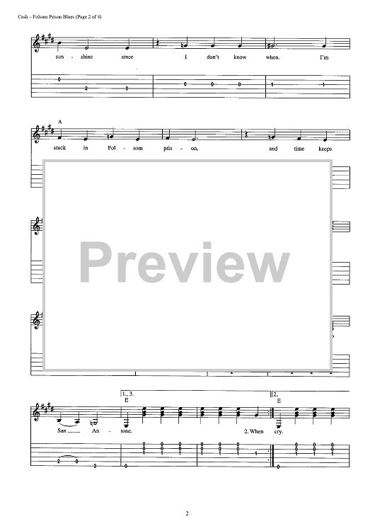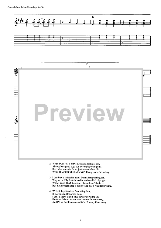 Digital Sheet Music for Folsom Prison Blues by Johnny Cash scored for Easy Guitar Tab/Vocal; id:441393