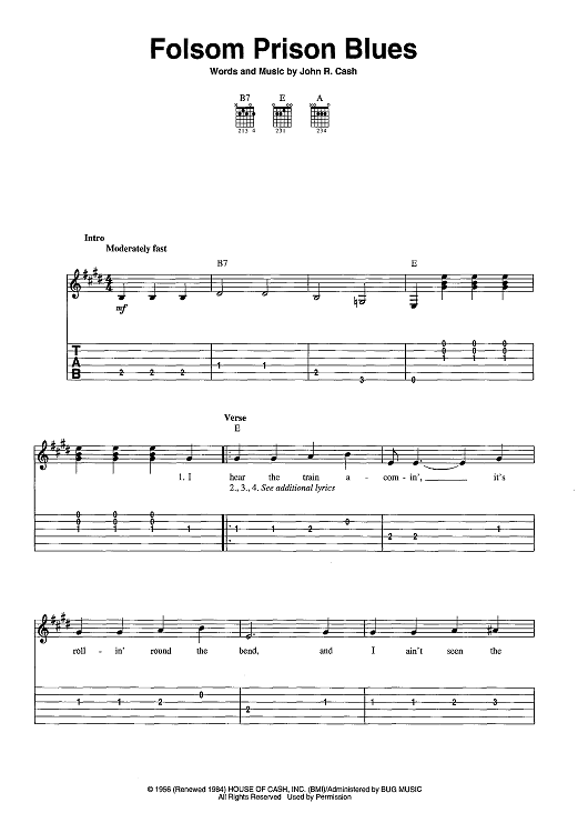 "Folsom Prison Blues" Sheet Music by Johnny Cash