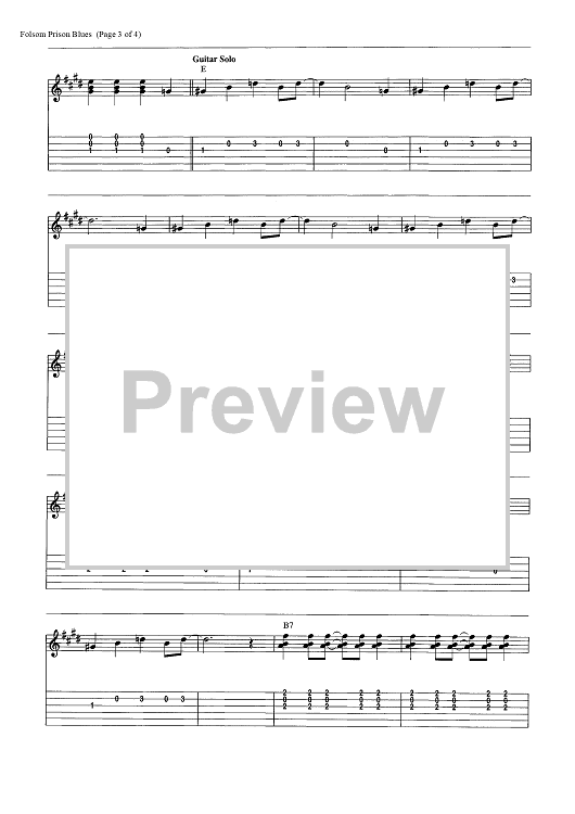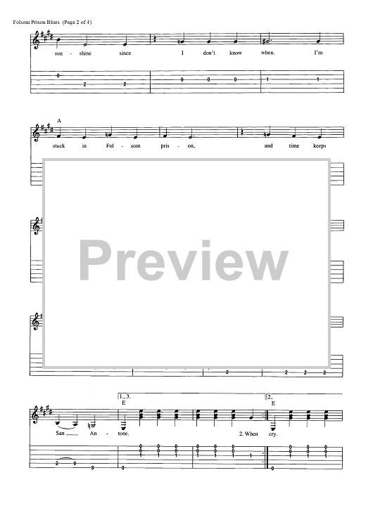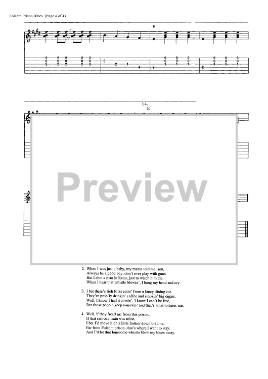 Digital Sheet Music for Folsom Prison Blues by Johnny Cash scored for Easy Guitar Tab/Vocal/Chords; id:456703