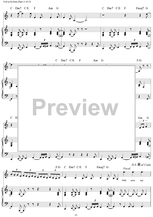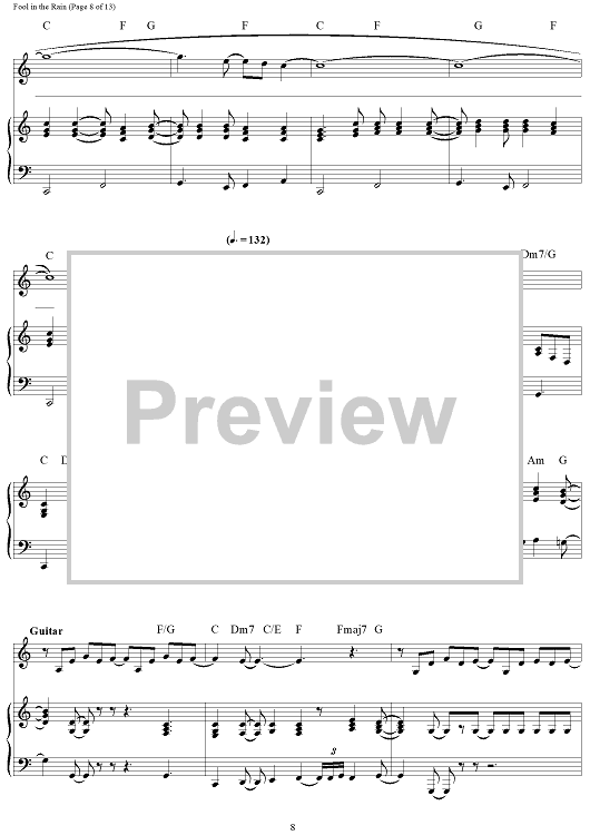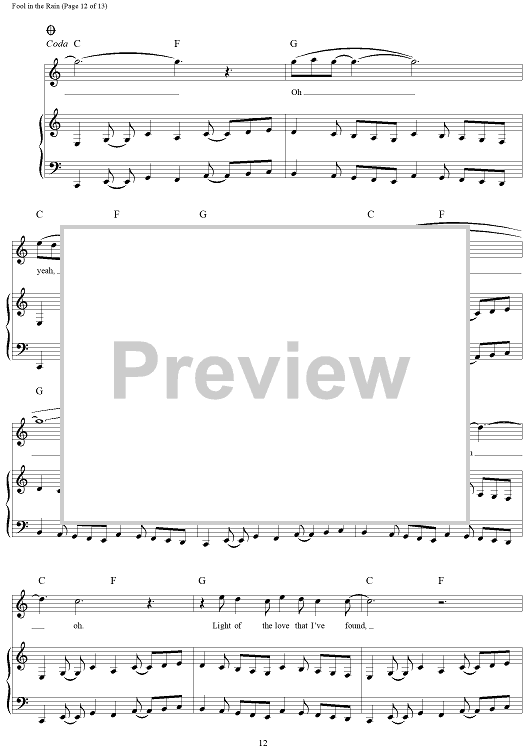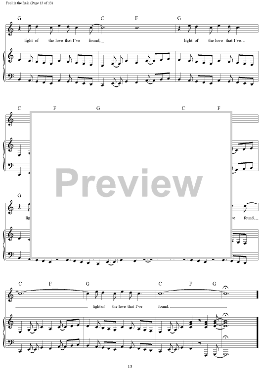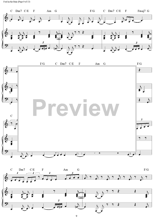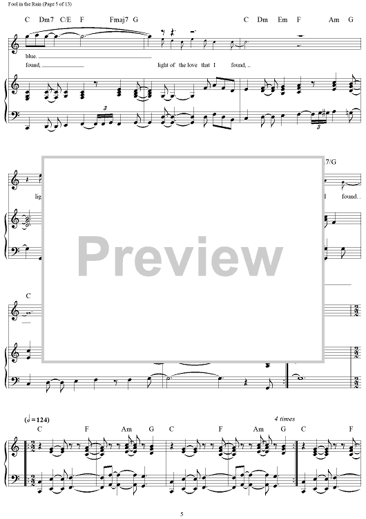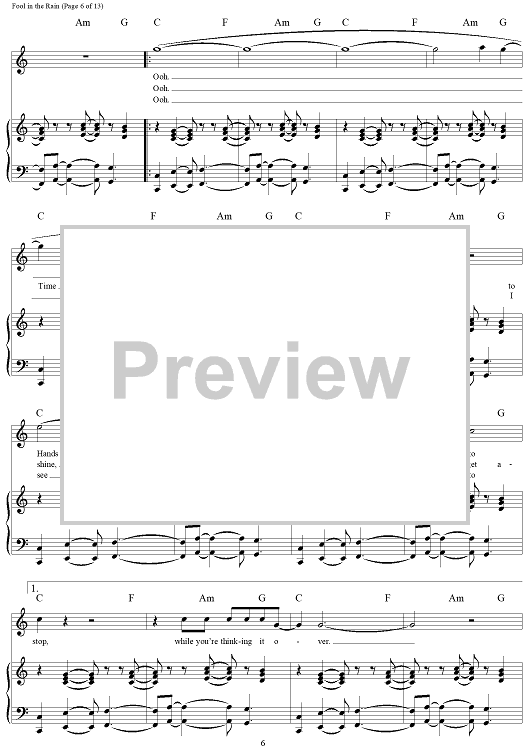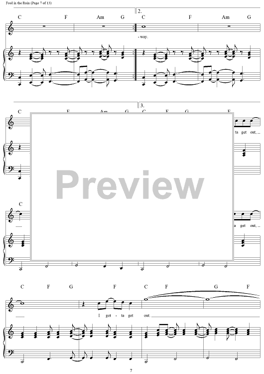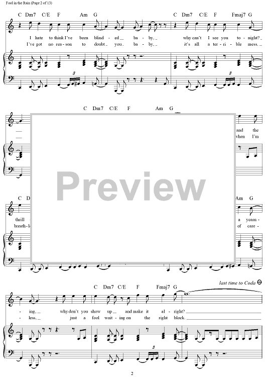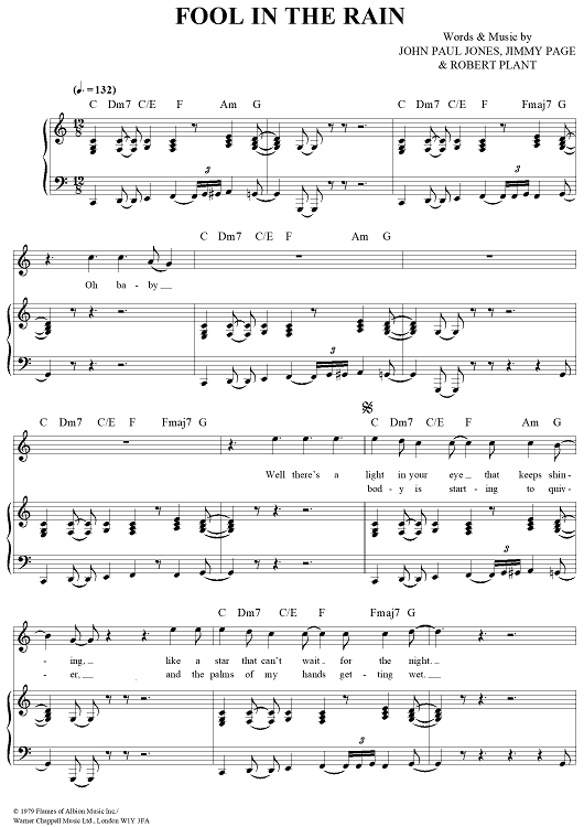 Digital Sheet Music for Fool in the Rain by Jimmy Page, John Bonham, Led Zeppelin, Robert Plant scored for Piano/Vocal/Chords; id:253950
