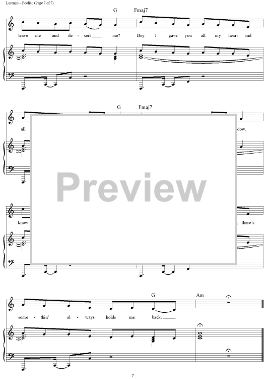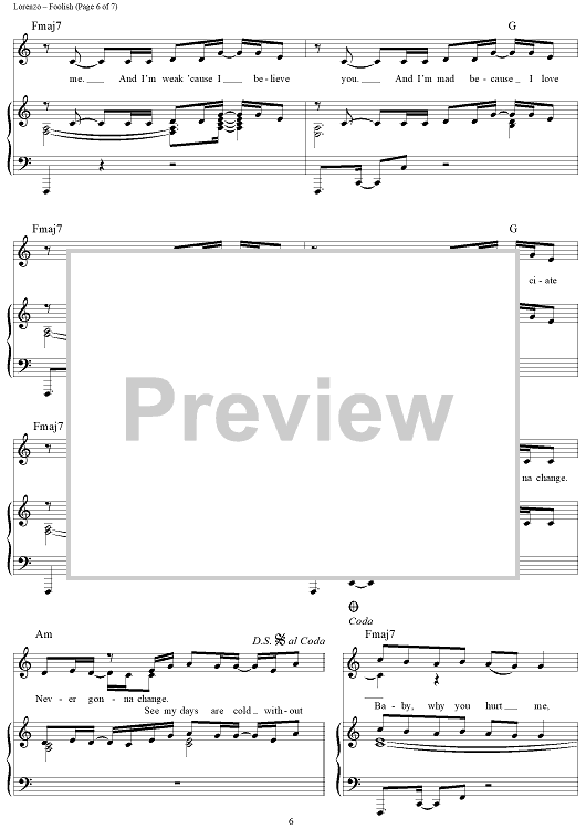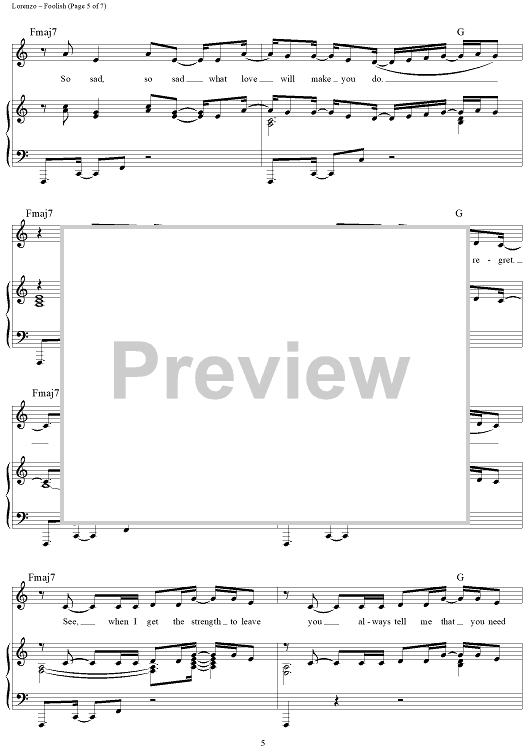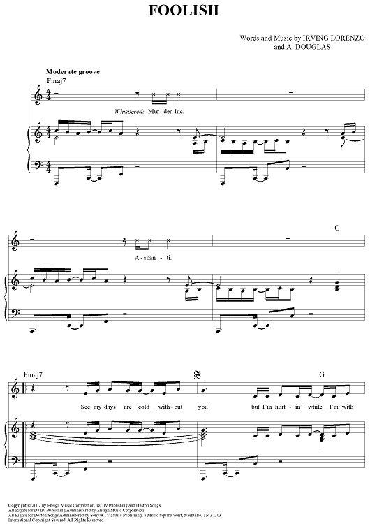 Digital Sheet Music for Foolish by Ashanti, Irving Lorenzo scored for Piano/Vocal/Chords; id:362917