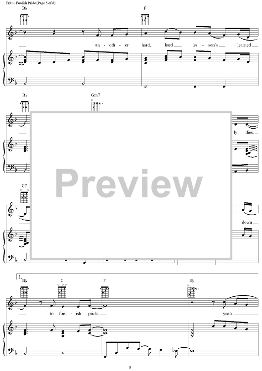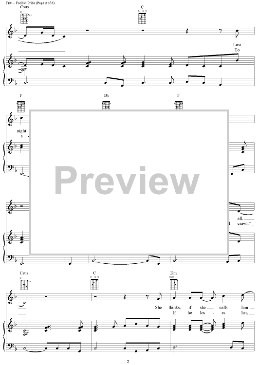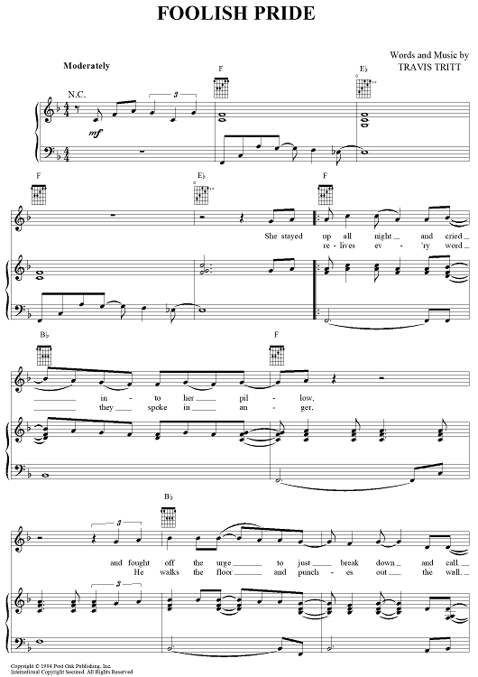 Digital Sheet Music for Foolish Pride by Travis Tritt scored for Piano/Vocal/Chords; id:370223
