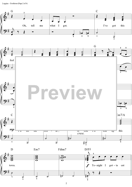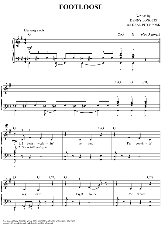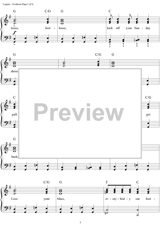 Digital Sheet Music for Footloose by Dean Pitchford, Kenny Loggins scored for Easy Piano/Vocal/Chords; id:251091