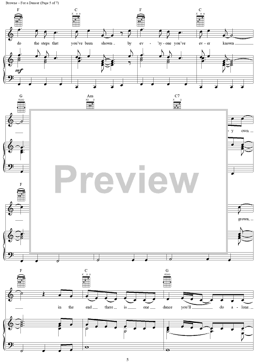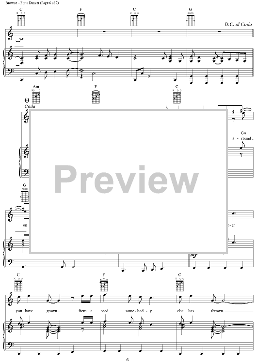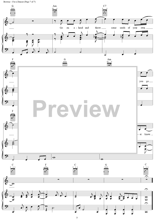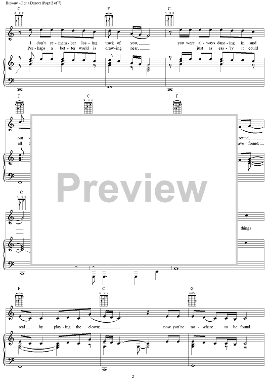 Digital Sheet Music for For a Dancer by Jackson Browne scored for Piano/Vocal/Chords; id:274518