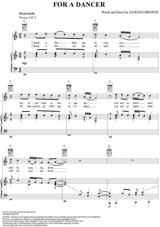 "For a Dancer" Sheet Music by Jackson Browne