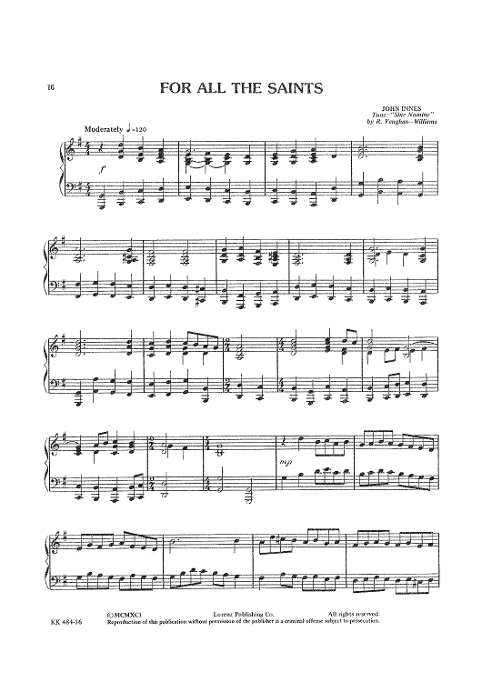 Digital Sheet Music for For All The Saints by Ralph Vaughan Williams, John Innes scored for Piano Solo; id:433618