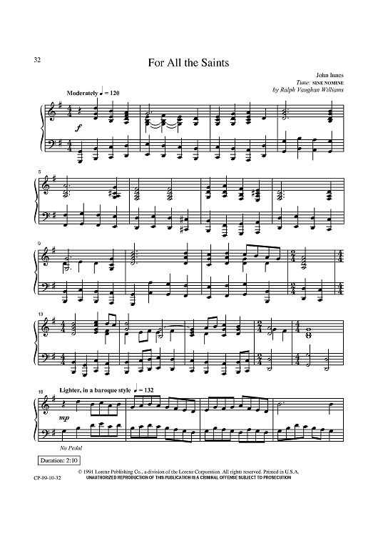 Digital Sheet Music for For All the Saints by Ralph Vaughan Williams, John Innes scored for Piano Solo; id:434407
