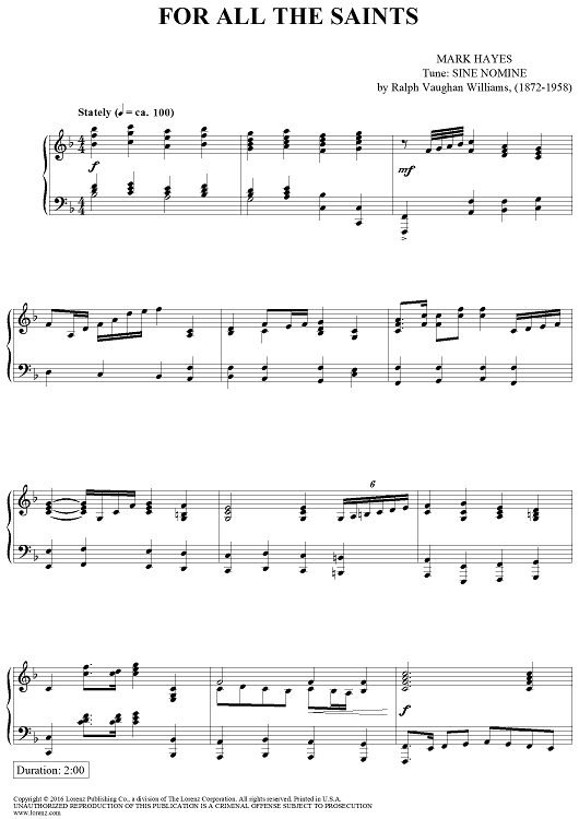 Digital Sheet Music for For All The Saints by , Mark Hayes, Ralph Vaughan Williams scored for Piano Solo; id:459516