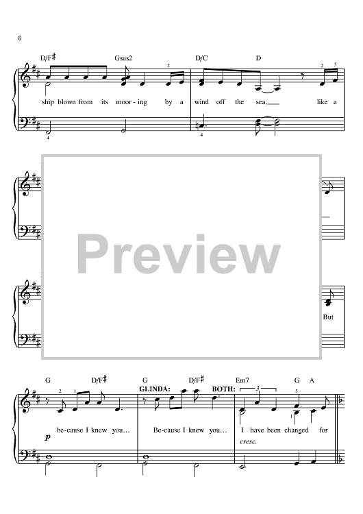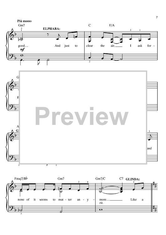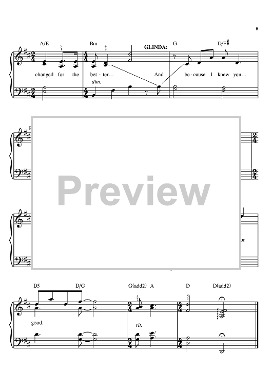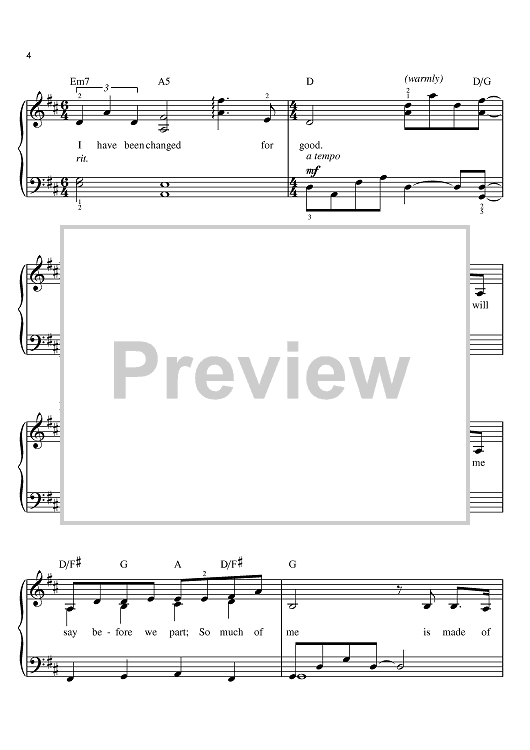 Digital Sheet Music for For Good by Stephen Schwartz scored for Easy Piano; id:380624