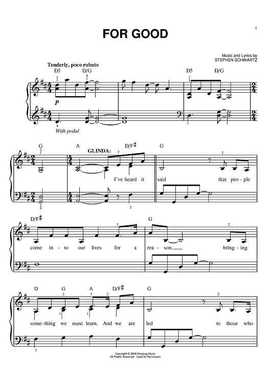 "For Good" Sheet Music by Stephen Schwartz