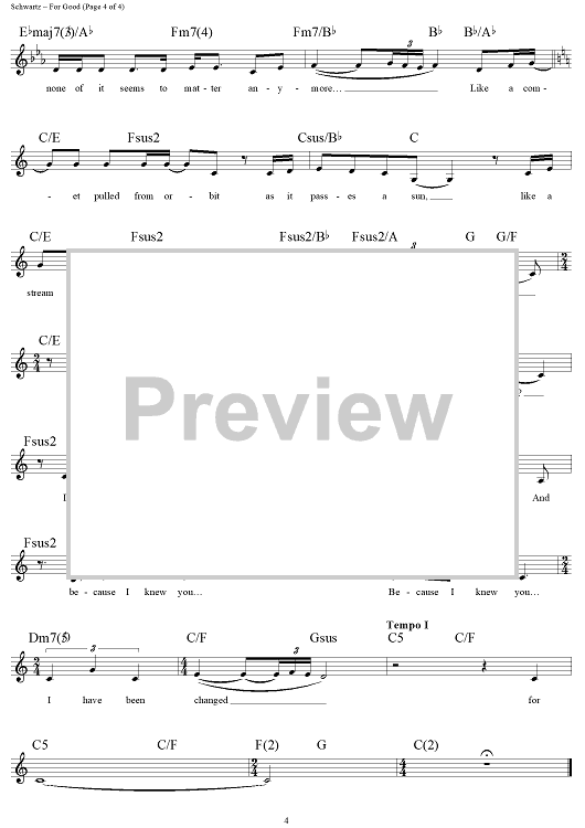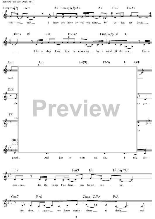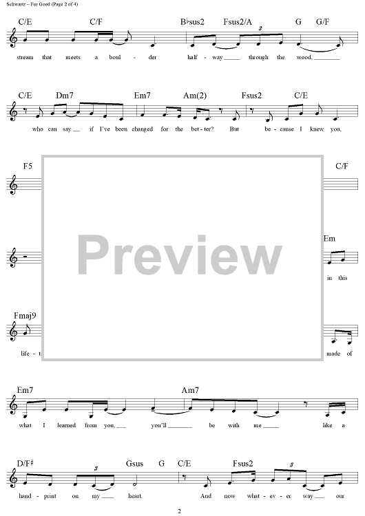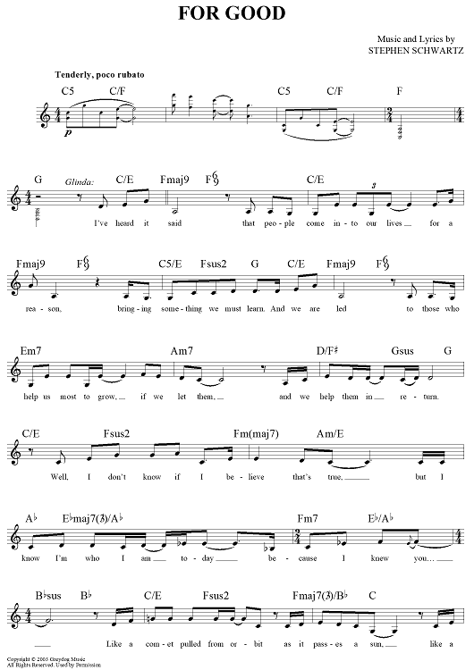 Digital Sheet Music for For Good by Stephen Schwartz scored for Lead Sheet; id:457763
