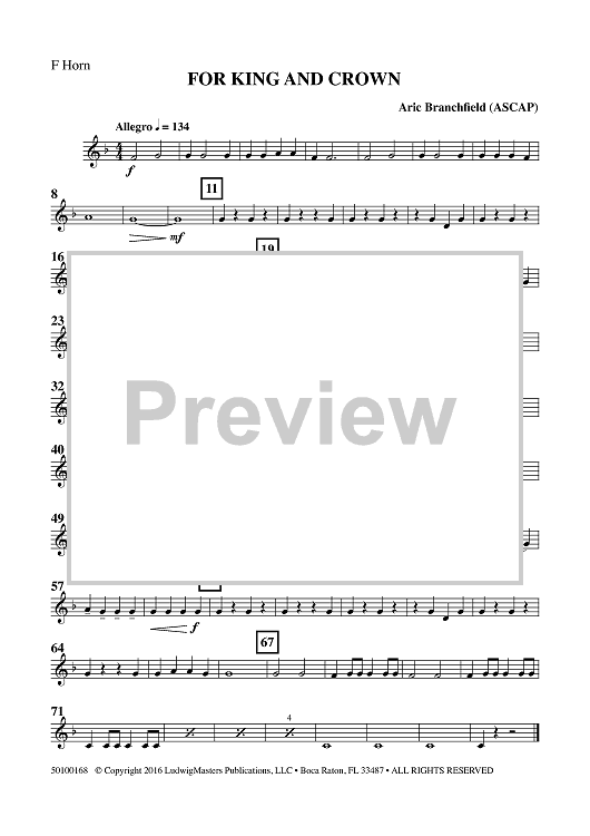 Digital Sheet Music for For King and Crown - Horn in F by , Aric Branchfield scored for Concert Band; id:461347