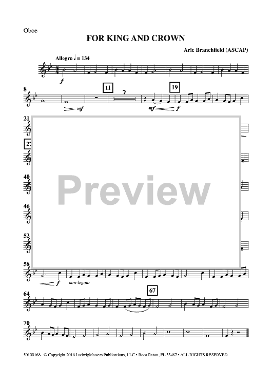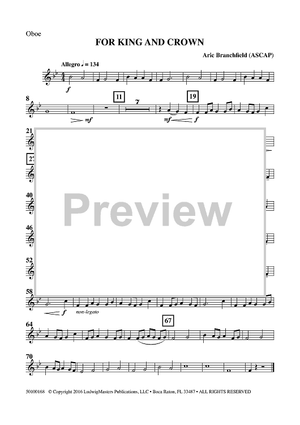 Digital Sheet Music for For King and Crown - Oboe by , Aric Branchfield scored for Concert Band; id:461336