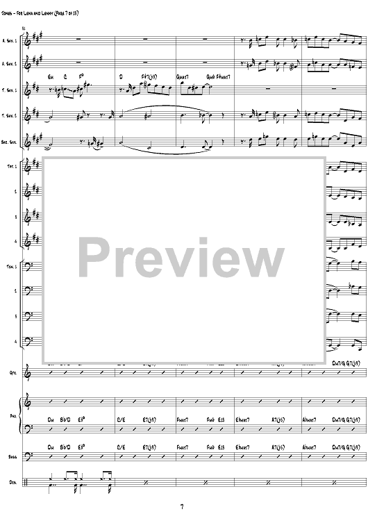 Digital Sheet Music for For Lena and Lenny - Conductor's Score by Sammy Nestico, Quincy Jones scored for Jazz Ensemble; id:310010
